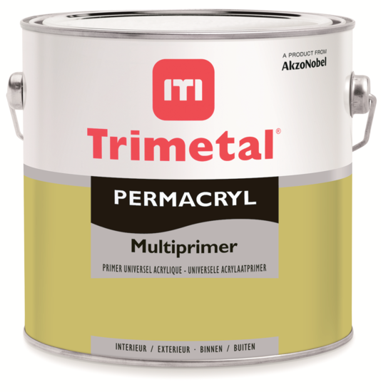 Permacryl Multiprimer is een waterverdunbare, dekkende, sneldrogende, vochtregulerende grondlak, op basis van acrylaat- copolymeer dispersiebindmiddel voor binnen en buiten.